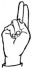 На ћирилици написано КОСТАДИН ВАСИЉЕВИЋ састоји се из 17 слова [?]. Исписано ћириличном једноручном азбуком за глувонеме: